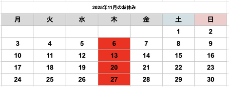 年内は比較的空きがありお日にち、お時間が選びやすくなっております。