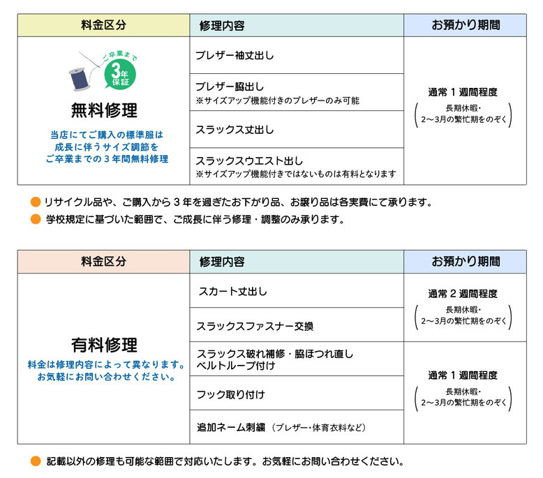 ○刺繍で個人ネームが入る商品 (中学校体操着類、制服類)はお申し込み後のキャンセル、交換はできません。
